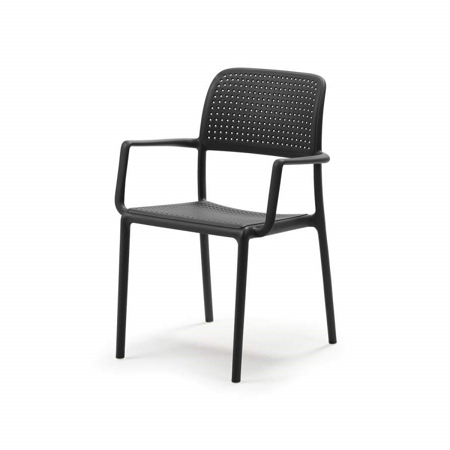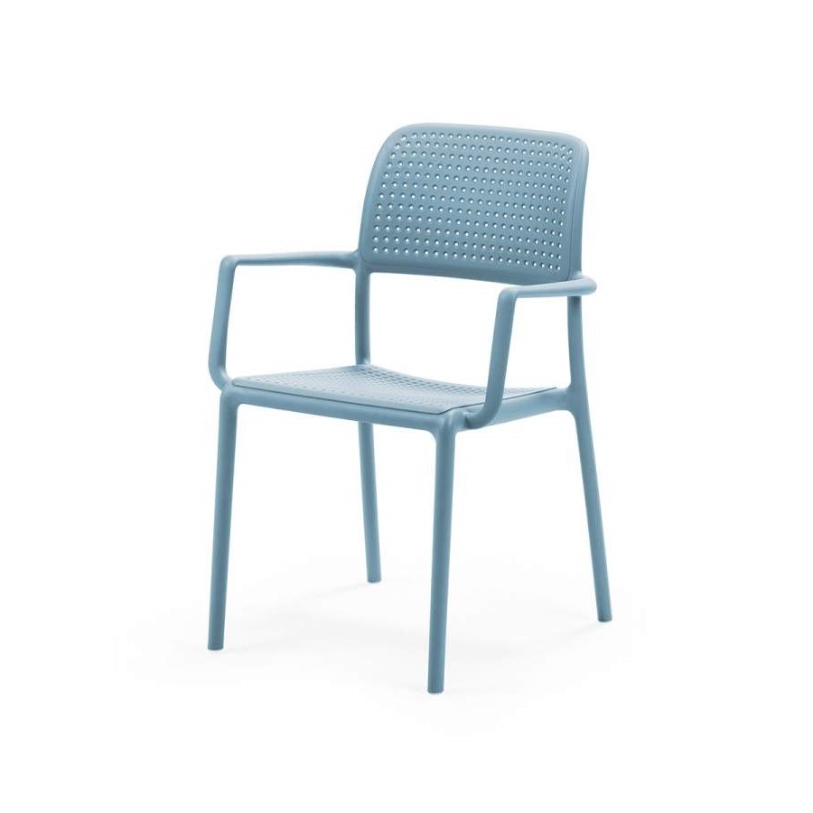 La poltroncina art.Bora ha la struttura monoblocco di polipropilene fiberglass, trattata anti-UV e colorata in massa. Con piedini antiscivolo.