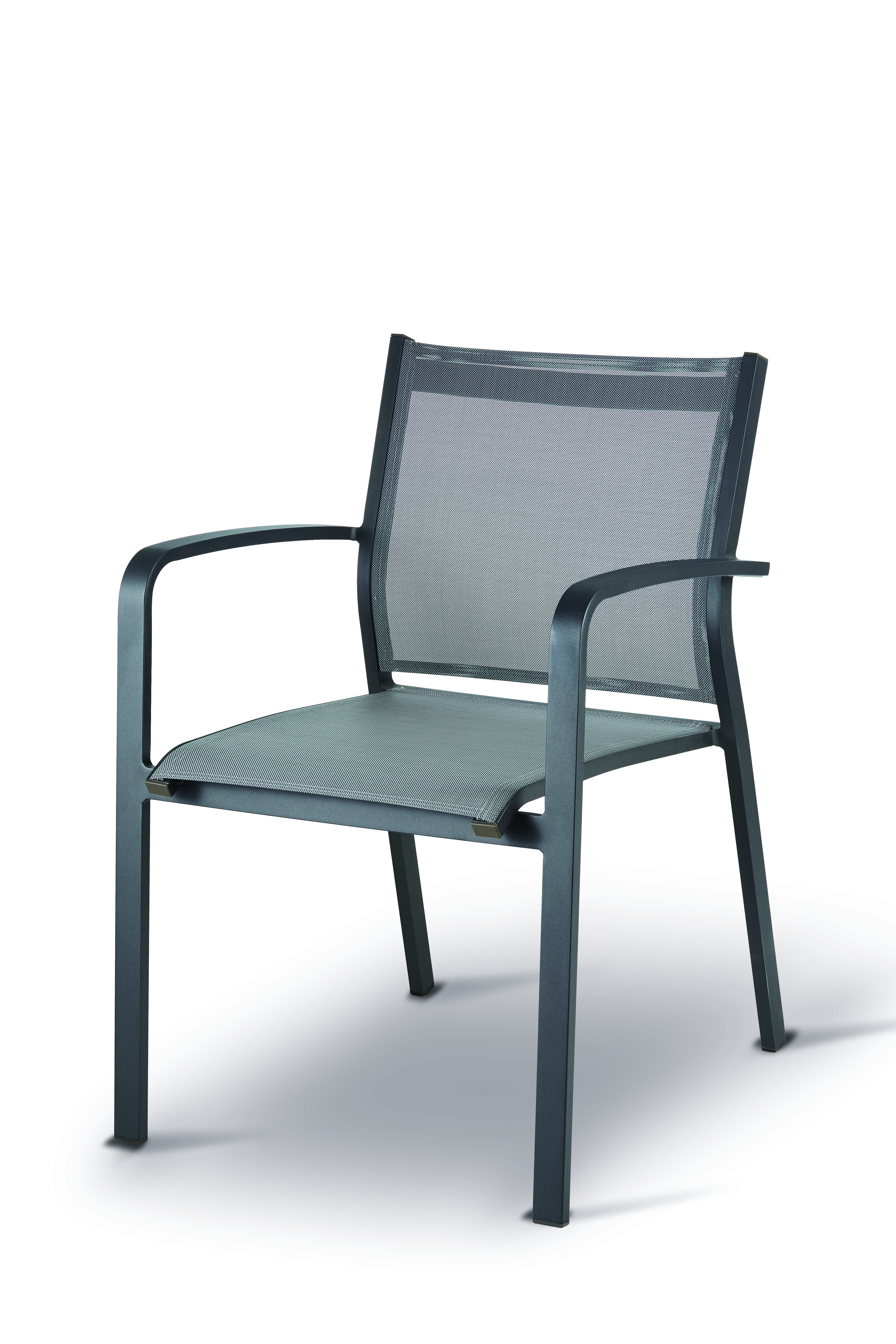 La poltroncina art.ES 936 ha la struttura di alluminio spessore 1,5 mm e il rivestimento textilene.