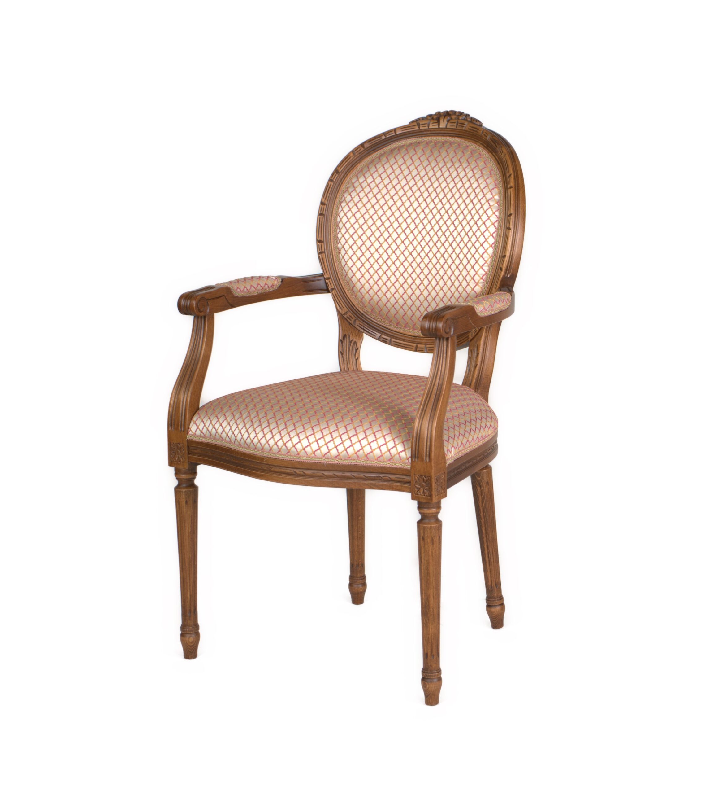 La poltroncina art.292/C ha il fusto di faggio. Seduta e schienale imbottiti.
