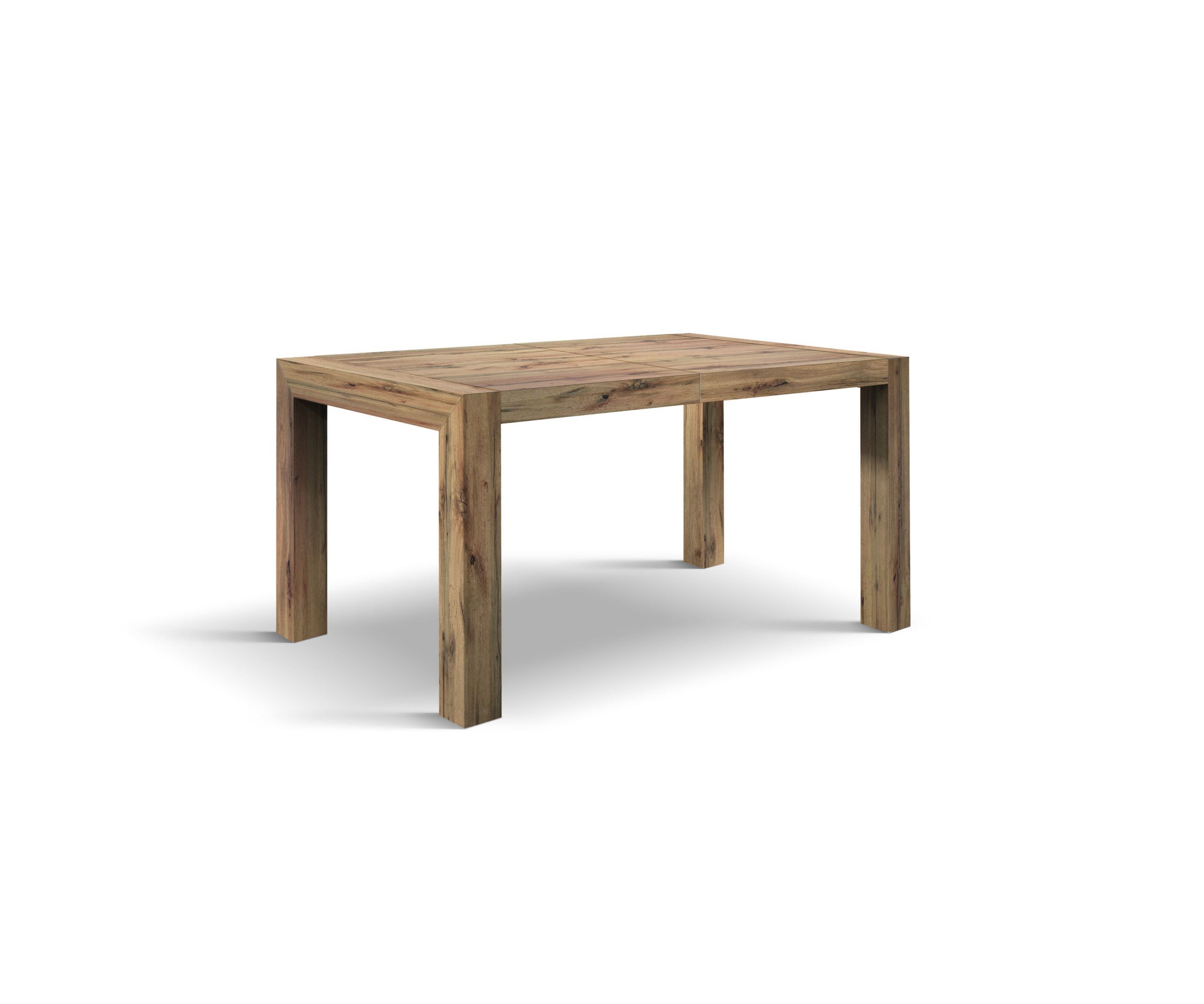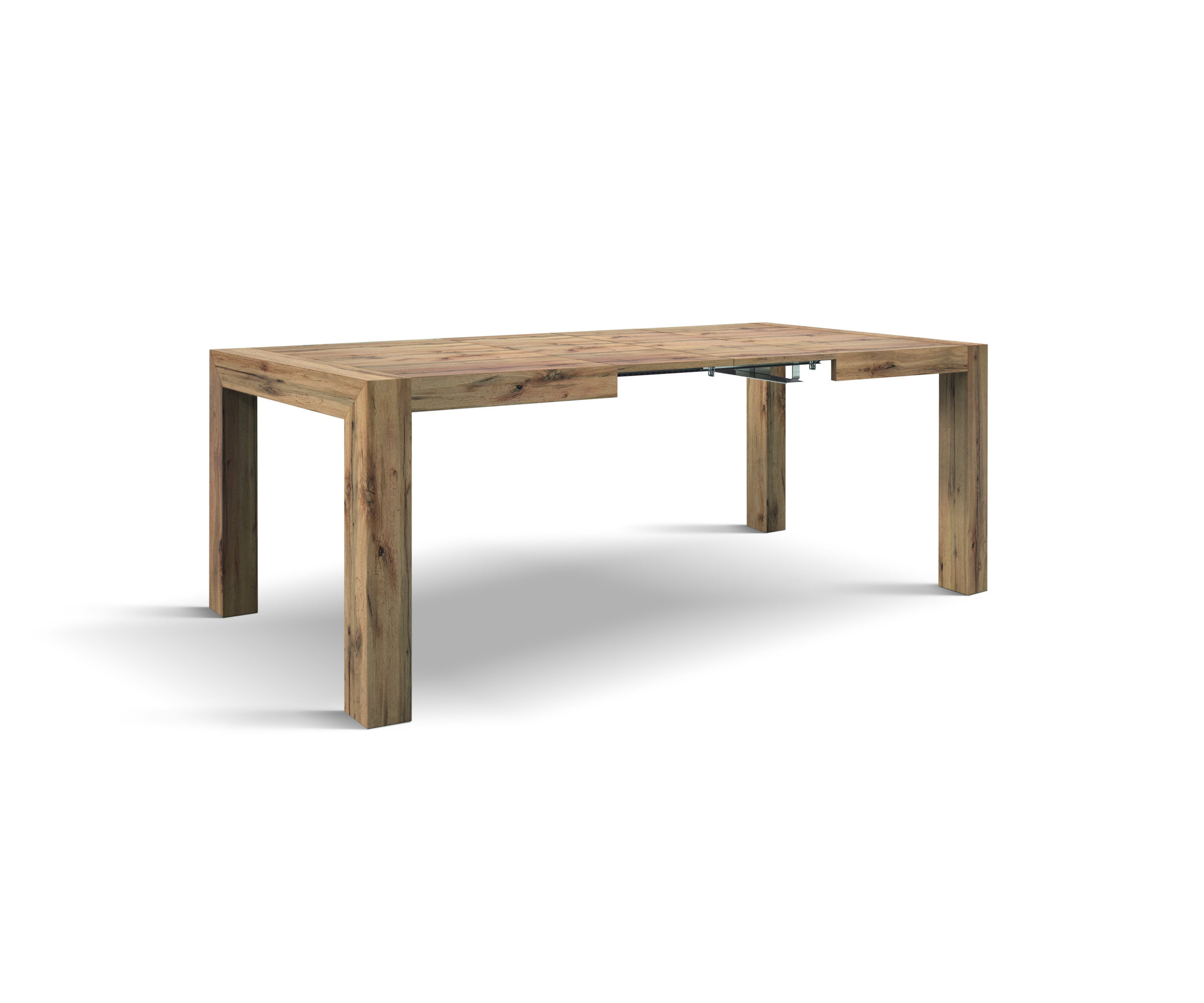 Il tavolo art.948 è composto da 4 gambe quadre e piano allungo telescopico ,140 x 90 +40+40, 160 x 90 +50+50, 180 x 90 +50 +50 nobilitato rovere rustico.